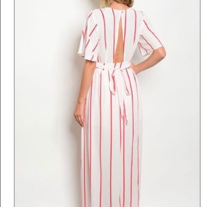 This Jumpsuit will have you singing "Rockin' Robin" all day long. The most comfortable, breath taking Jumpsuit ever made!! The front has a low v-neck line and then back has a perfect opening. Zipper in the back. Available in small / medium & large