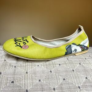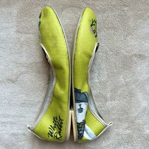 Rockit “White Rabbit” Green Printed Leather Ballet Flat Shoes Women EU 38 US 7.5