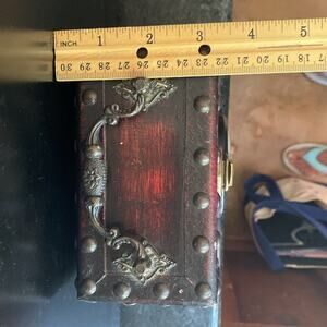 Dockland brown metal banded time pieces decorative hinged clock box. Approximately 8x5x3”, see pictures for details.