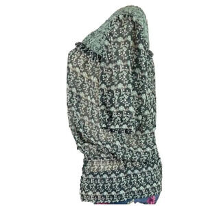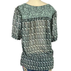 Rockmans 12 Green Floral Sheer Print Drop Elastic Waist Short Sleeve Blouse