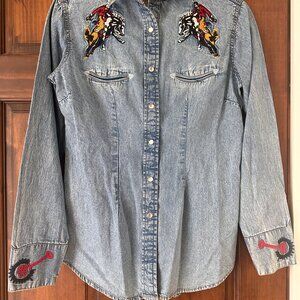 Rockmount Ranch Wear Bronc Vintage Embroidery Western Shirt in Denim