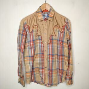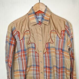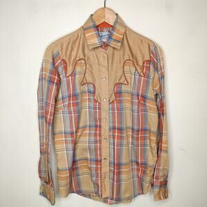 Rockmount Ranch Wear custom fitted plaid pearl snap shirt. Size 36. 65% polyester, 35% cotton. (22402)