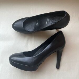 Rockport Adidas Adiprene Black Leather Janae Platform Stiletto Heels Pumps 7.5