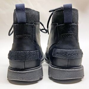 Rockport Black Leather Rugged Bucks II Lace-up Chukka Boots Size 8.5 Waterproof. Boots are in very good condition. Although there is a "Waterproof Hydro-Shield" tag attached to one of the boots, there are a few scuffs to the nubuck leather uppers. Otherwise, there is minimal wear to the outsoles. Please see all photos for condition. Hydro-shield waterproof technology repels water and helps keep feet dry, while a tpr outsole offers comfortable shock absorption. Shaft measures 4.5 inches high.