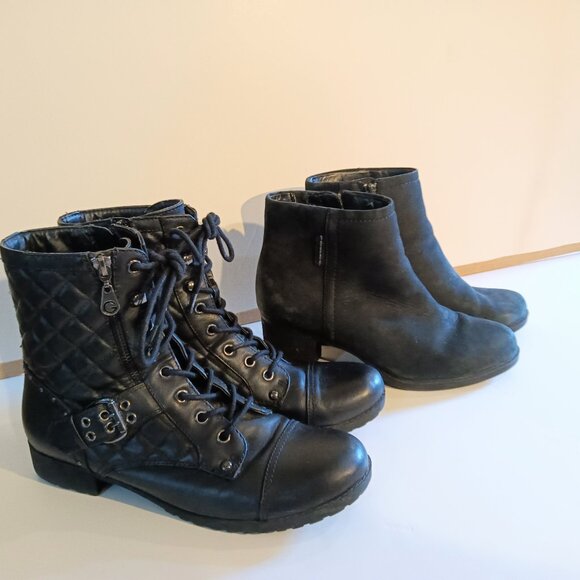 Rockport Black Suede Leather Booties and Guess Black Quilted Moto Boots Size 8.5