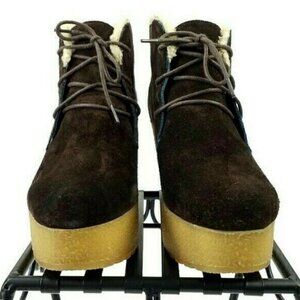 Rockport Cedra Desert Brown Suede Leather Lace Up Wedge Ankle Boot Womens Size 8