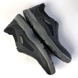 Rockport Chranson leather slip-on loafers in excellent gently used condition. Leather upper, side goring, perforated vamp, side mesh panels, rubber soles, round toe with bumper, removable insoles.