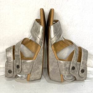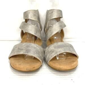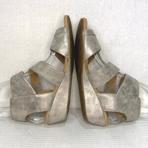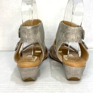 Rockport Cobb Hill Comfort Wedge Sandals Gold Metallic Hook Loop Closure Sz 7.5