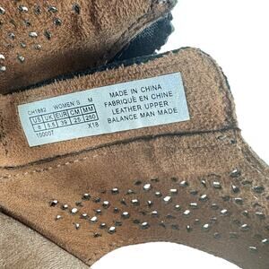 Excellent preowned condition, light wear on soles. Leather gray perforated cork wedge open toe sandals. Zipper closure. Approx. measurements: Length 10", heel height 3". Women's size 8.