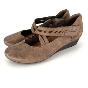 Rockport Cobb Hill Janet Cross-Strap Mary Jane Leather Comfort Wedge Size 9