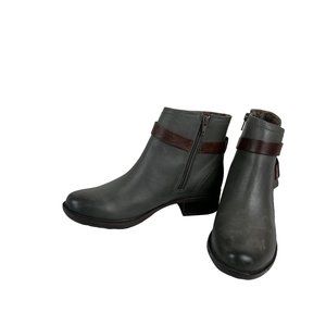 Rockport Copley Strap HYDRO SHIELD Bootie Brown Greyish 1.5 inch block heal 7.5
