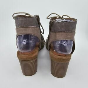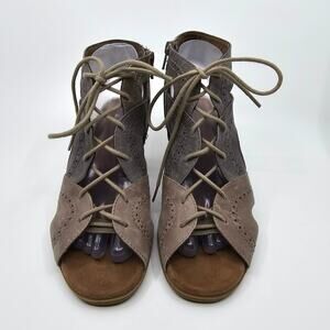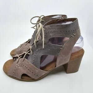 Rockport Hattie Open Lace Shoes Block Heel Leather Taupe Womens Size US 7.5