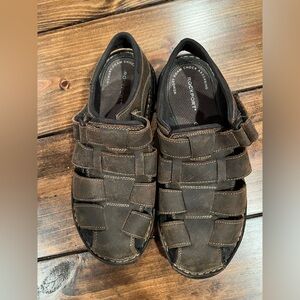 Rockport Men's Brown Leather Memory Foam Sandals, size 10, GUC, comfort, casual
