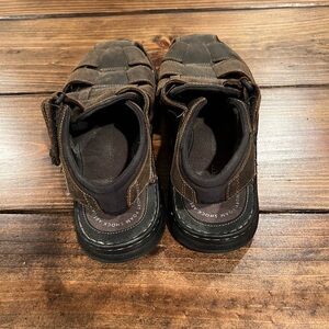 Step into comfort and style with Rockport's brown fisherman sandals, featuring a rugged design perfect for outdoor adventures. Crafted from high-quality leather, these sandals offer a closed-toe design with Velcro straps for added protection and ventilation. The sturdy rubber sole ensures durability and traction, making them ideal for active wear. Experience the perfect blend of practicality and casual elegance with Rockport. GUC, men’s size 10, smoke free home. Thanks for looking!