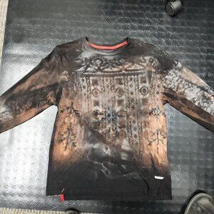 Fit: True to medium. i am 5'8 and the shirt drops ~2in below waistline.