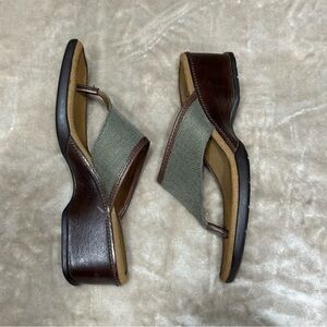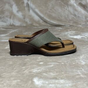 Rockport Olive Green with Brown Accent Thong Heeled Sandal