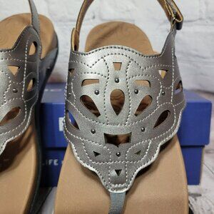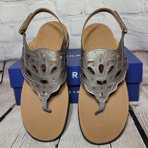 Pair up the Rockport Ridge sandal with your favorite outfit. Flaunting a T-strap silhouette accentuated with stitching accents, cutouts, and metallic studs, this slingback sandal offers excellent comfort and traction.