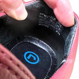 Very Good condition; right shoe heel small tear in leather; scuff on front toes; tiny brown spots on uppers are part of the leather (See Photos)
