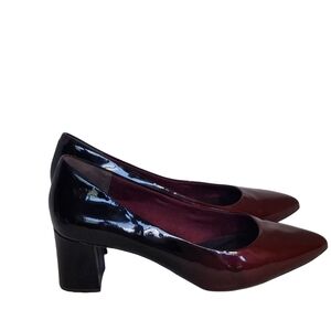 Rockport Salima Red Black Ombre Patent Leather Pumps Pointed Toes Block Heel