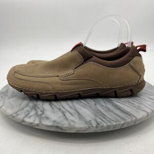 Rockport Shoes Mens 8 Khaki Tan Nubuck Leather Slip On Loafer Adiprene Adidas