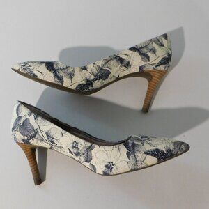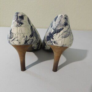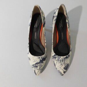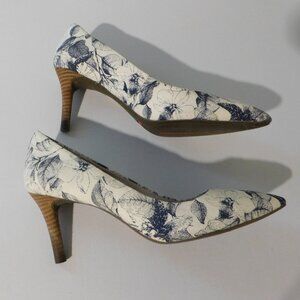 Rockport Total Motion Adiprene Comfort Blue White Canvas Floral 3" Heels Womens