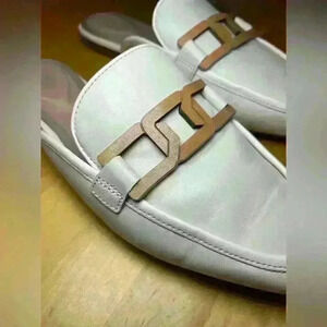 Rockport Total Motion Laylani Cream White Chain Link Mule Slides Flats Sz 6.5