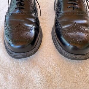 They feature a "wingtip" design, characterized by the decorative perforations (broguing) and the W-shaped toe cap that extends back along the sides of the shoe.