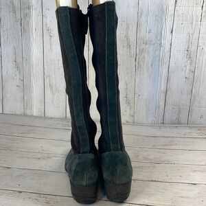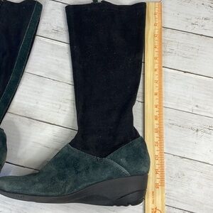 Rockport Waterproof Suede and Fabric Navy Blue and Black Knee High Wedge Boots