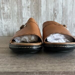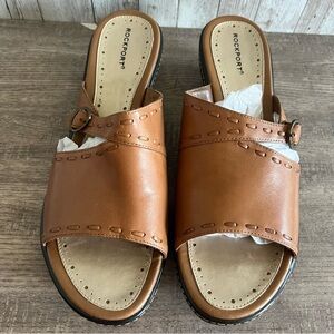 Step into comfort with Rockport's stylish tan slide sandals. Perfect for any casual outing, these sandals offer both elegance and ease.