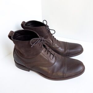 Rockport Wynstin Cap Toe Boots Brown Leather & Suede Upper Wide Men's Size 10.5W
