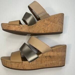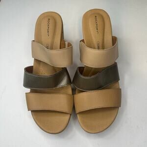 Rockport women's trutech leather wedge platform cork slide sandals size 9.5 W