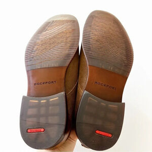 Rockport men’s brown leather oxfords size 8.5. Shock absorbing technology. Preowned, very light wear.