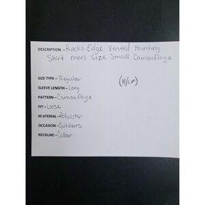 Rocks Edge Vented Hunting Shirt Men's Size Small Camouflage (H/LP)