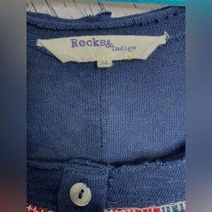 Rocks & Indigo High-Low Embroidered Tunic Top Navy M