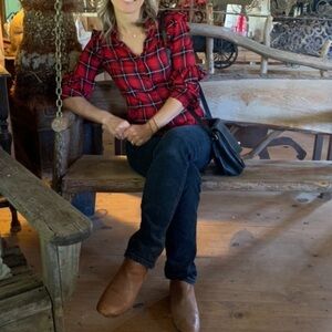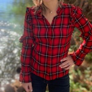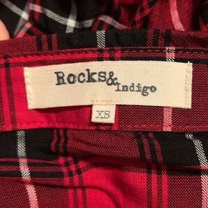Rocks & Indigo plaid red black ruffles button down Shirt XS holidays Christmas