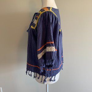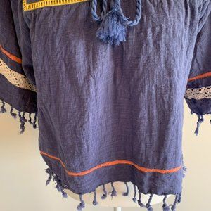 Very cute chic spring summer boho peasant top by Rocks and indigo. Cut our crochet detailing with tassle ties and fringing. 100% cotton. NWOT no wear!