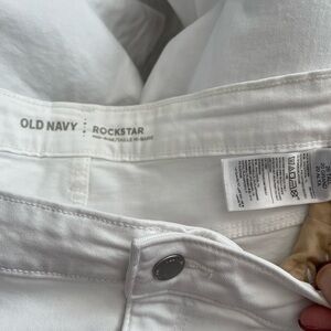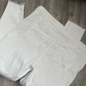 Tall skinny rockstars with fringe on the bottom, and a ripped knee. Excellent condition, no marks or stains.