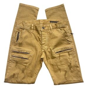 Rockstar Jeans Sushi Mens 32 Khaki Moto Biker Zip Pockets Distressed Button Fly