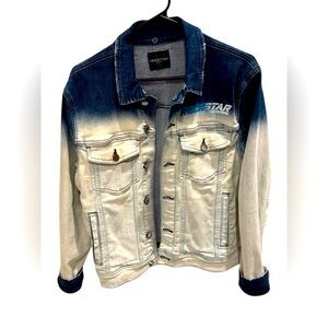 Stylish denim jacket with a blue ombre effect. Features button closures and front pockets. Rockstar branding on the chest.