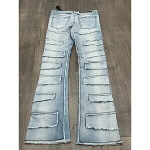 Rockstar Original Mens Stacked Flare Denim Jeans Shake Light Blue Size 32 NWT