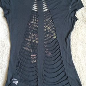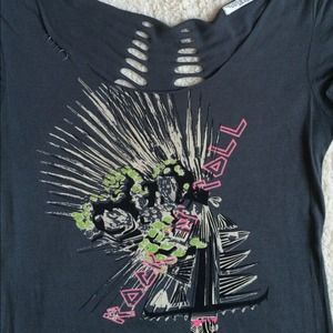 This fun Rockstar T-shirt is fun and flirty. Perfect for any concert. Flattering fit and super comfy. The back is cut out in a unique style!