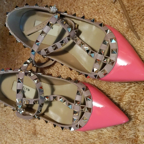 rockstud flats shoes. Valentino lookalike. still new condition barely used. hot pink colors.