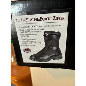 Durability, safety, and comfort... all of these factors were considered when Rocky constructed AlphaForce Zipper Duty Boots. To create a durably tough exterior, Rocky used full-grain leather and 1000 denier nylon (superior strength). A side zipper allows you to easily get these boots on and off. It's covered with a VELCRO strap. While you're on duty, AlphaForce boots keep your feet safe. Although these Alpha Force duty boots have a tough exterior, the Air-Port cushion footbed supports and cushions your feet each time you take a step. It also circulates air within these boots. The RigiTrac outsole won't leave marks, and its slip-resistance helps you keep your balance while on duty. With all of these great features, this Rocky Alpha Force is the right duty boot for you!