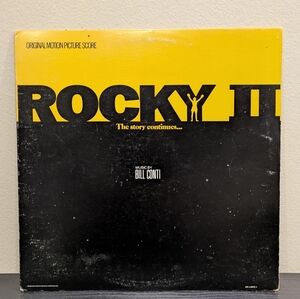 Experience the iconic music of Rocky II with this original motion picture score vinyl record. Featuring a striking yellow and black design, this record is a must-have for collectors and fans alike. Enjoy the legendary compositions by Bill Conti.