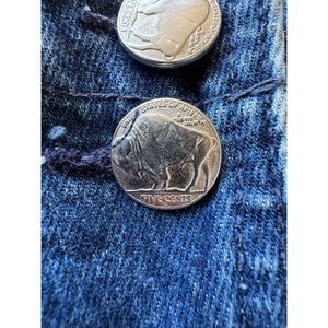 Double button wrap with faux buffalo nickels and zipper closure