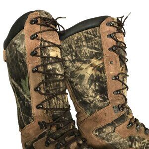 There are sixteen inches of snakeproof protection on these hunting boots. Additionally, a full-grain leather trims the Mossy Oak camouflage nylon, a material that reinforces the Guaranteed Rocky® Waterproof construction. So your feet will stay dry in any condition.