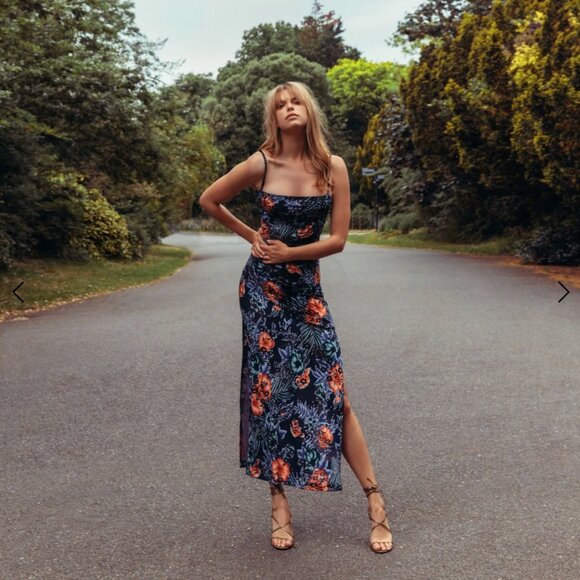 Rocky Stretch Burnout Velvet Floral Dress With Spaghetti Straps