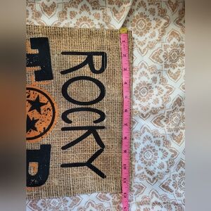 Add a touch of charm to your home with this Rocky Top burlap look garden hanging. Featuring bold black and orange lettering, it's perfect for any fan's decor.