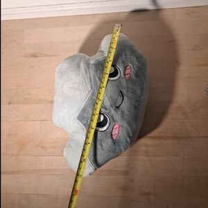This adorable plush pillow features a soft gray rock design with embroidered kawaii-style eyes, pink cheeks, and a friendly smile. Perfect as a fun throw pillow, cuddle buddy, or unique gift for kids and collectors!
