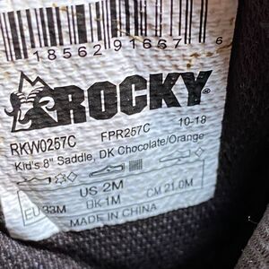 Rocky boots 8” Little boys Brown and tan Sz 2 Good used condition